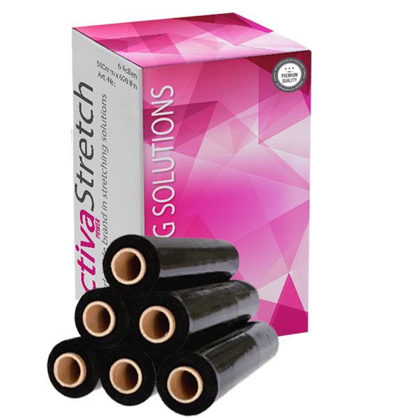 Stretchfolie von Activa Basic Black ist eine qualitativ hochwertige Folie, um Artikel versandfertig zu machen. Sie ist ideal zum Sichern von Paletten, kann aber auch für einen Umzug verwendet werden. Die Rollen haben eine Dicke von 20 my und können von Hand oder mit einem Spender verwendet werden. Da die Folie schwarz ist, sind die eingepackten Waren nicht für jedermann sichtbar. Sie ist daher ideal zum Verpacken von wertvollen Gegenständen. Die 20 my Dicke sorgt dafür, dass die Farbe der Folie tiefschwarz bleibt, auch nachdem die Folie gedehnt wird. Die Folie ist extrem reißfest und gut dehnbar. Auf einer Rolle befinden sich 300 Meter Folie.