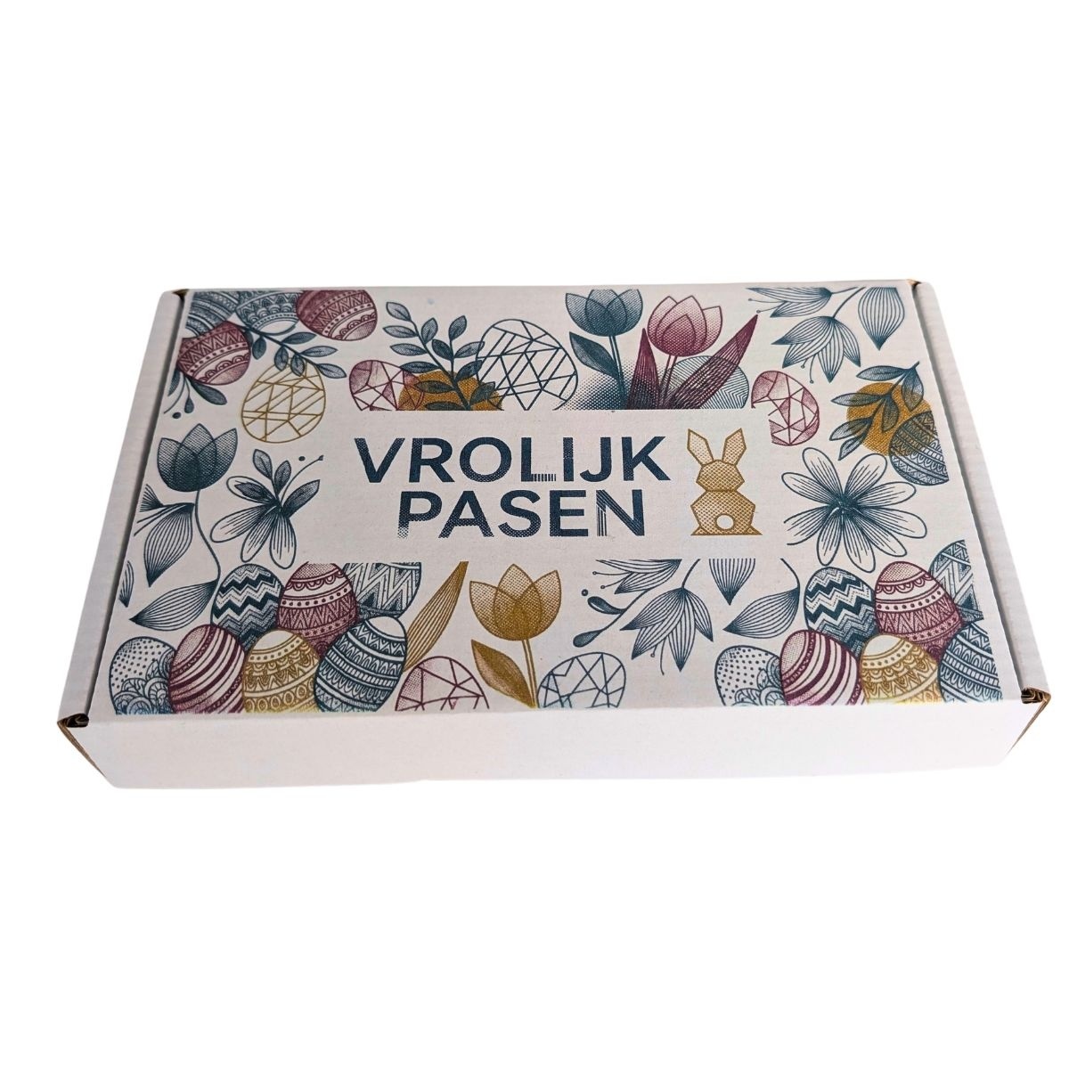 Diese weiße A6-Briefkastenbox ist mit einem stilvollen Osteraufdruck auf der Oberseite versehen, wodurch eine